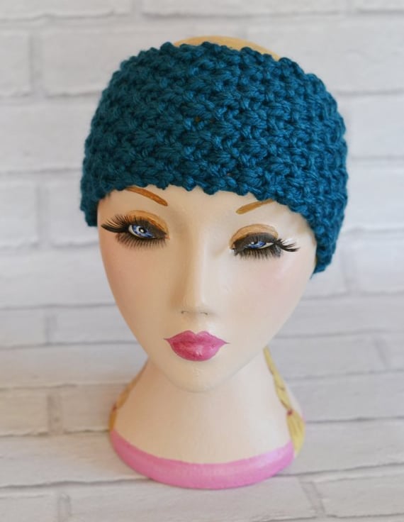 Knitted in a chunky yarn in your choosen colour. The one being modelled is called Petrol and is instock ready to post.