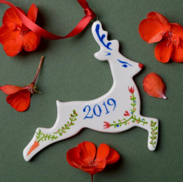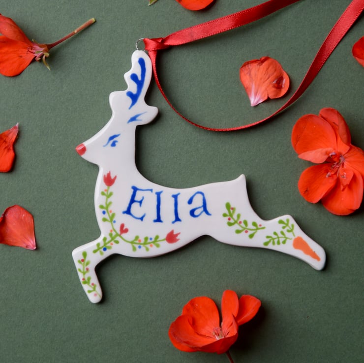 Rudolph is hand-made and can be personalised with a name on one side and the date on the other.