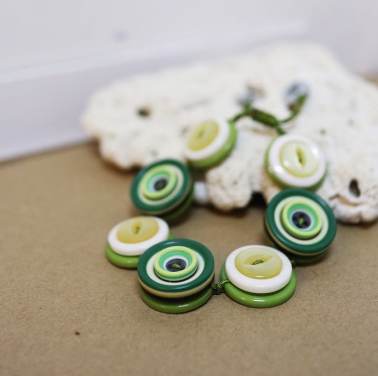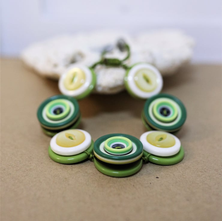 Green and yellow Story - Vintage Button Adjustable Bracelet