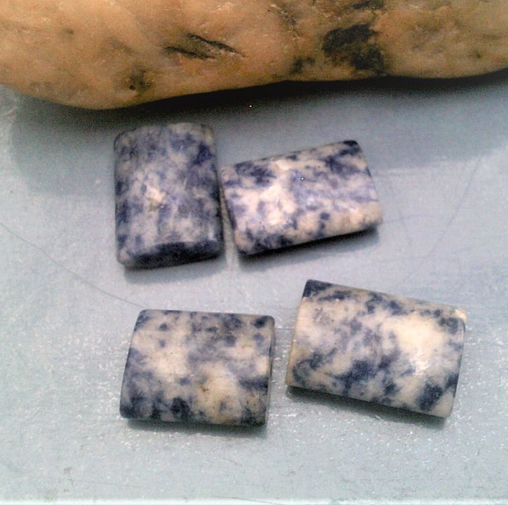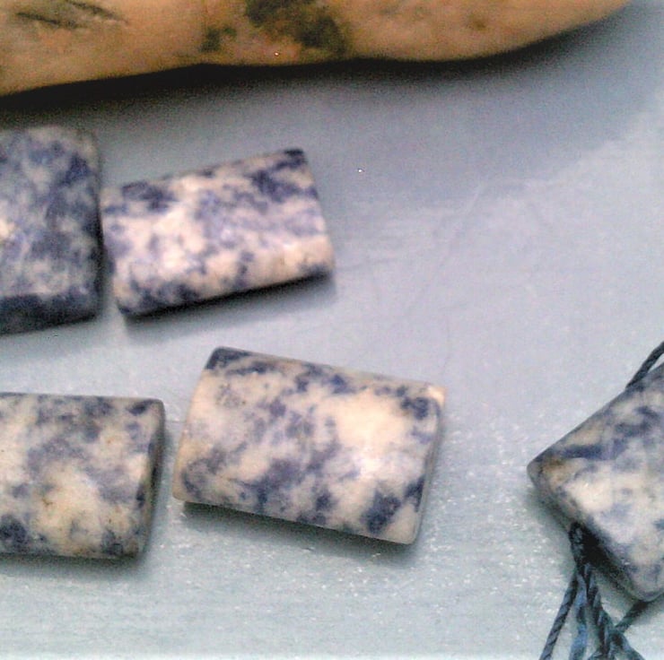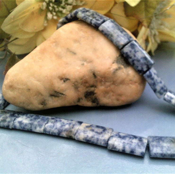 Four (4) rectangular sodalite gemstones for jewellery or craft making. A lovely denim blue marbling on this stone bead.