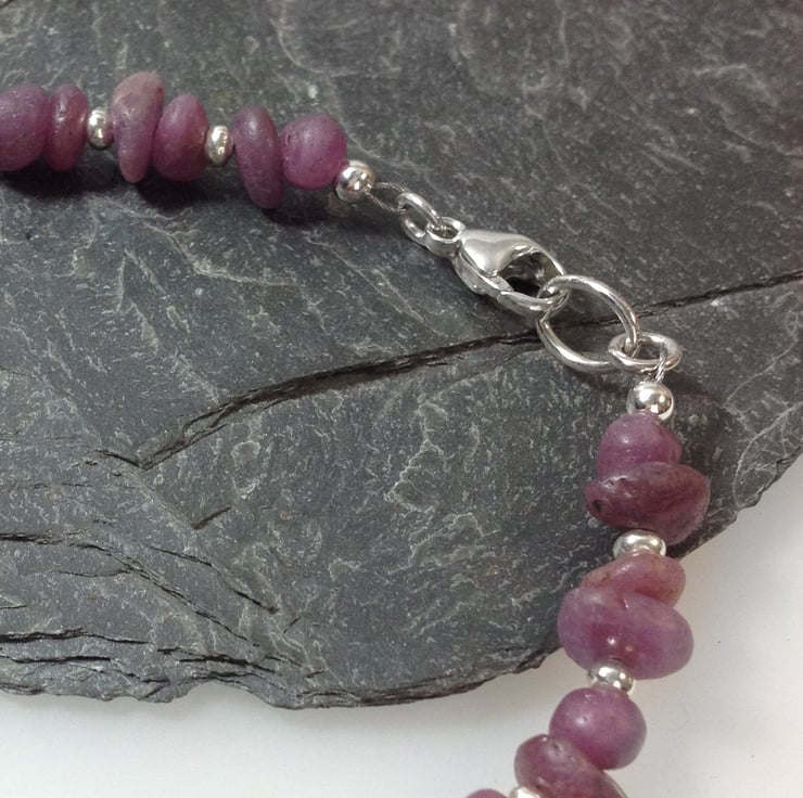 I have added a solid polished fine silver bead between each pair of rubies to add lift and sparkle.