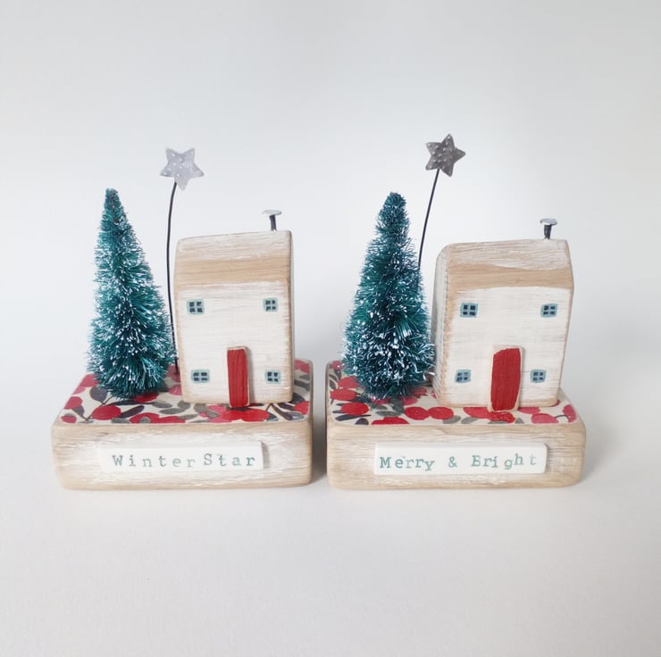 A one of kind handmade piece in festive colours for a mantle or shelf, this cosy little Christmas house is looking for a home.