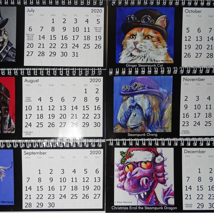 Steampunk Animal Paintings Desktop Calendar for 2020