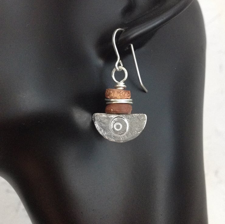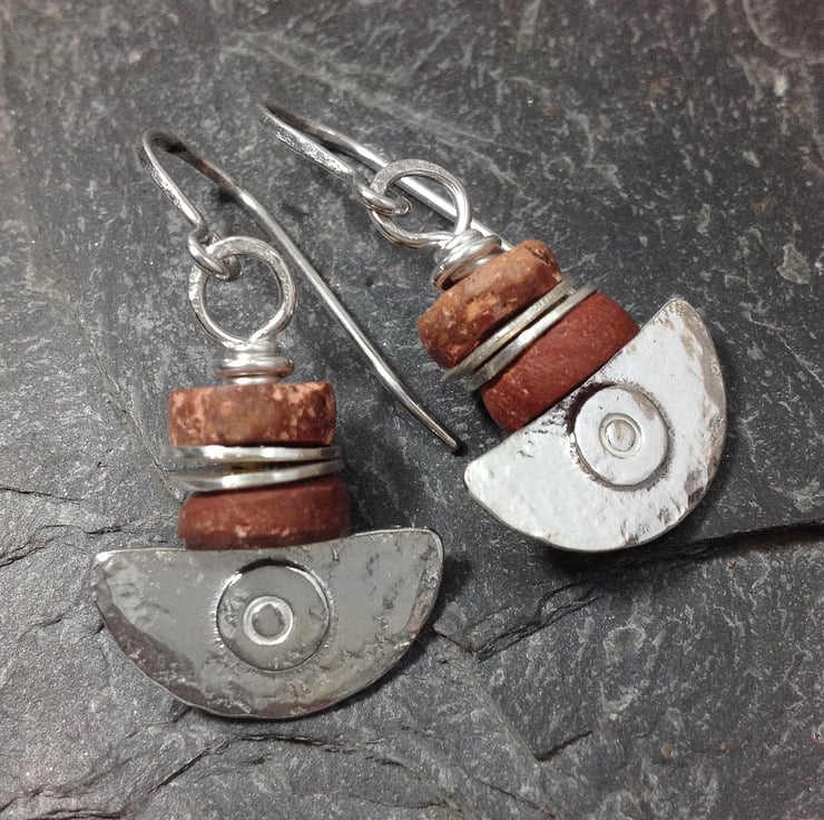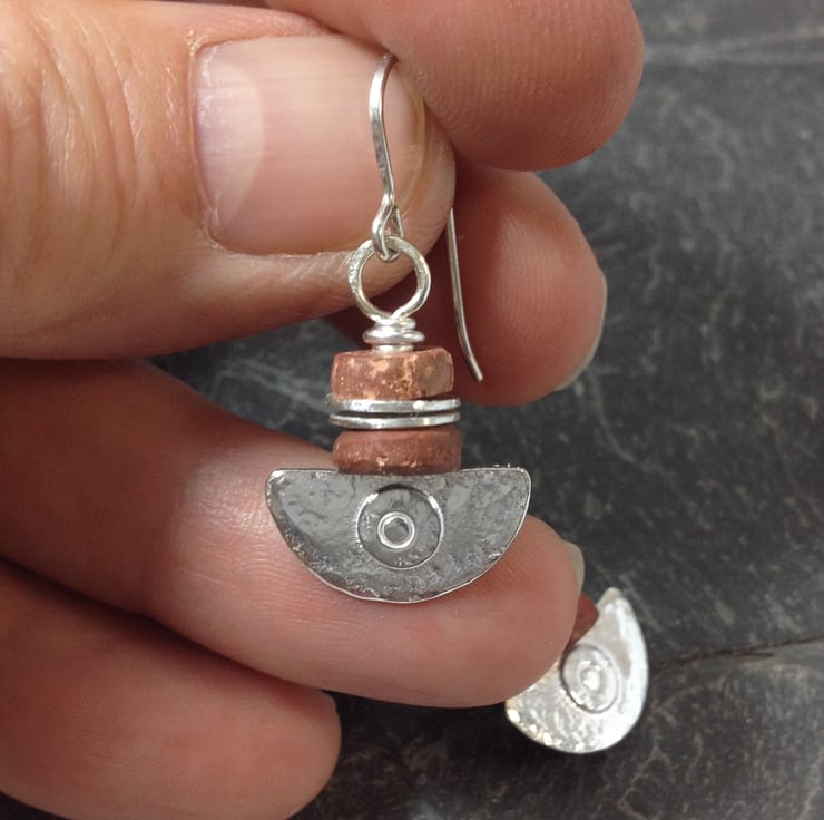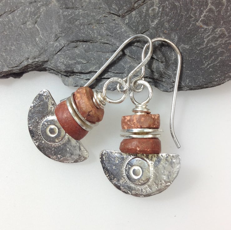 The African bauxite beads initially shaped by hand by women in Ghana have been re cut by me, into thin disc beads for this design.They have a raw irregular weathered look.