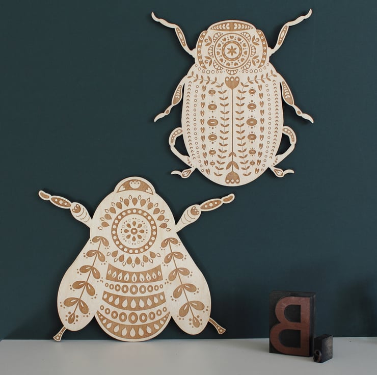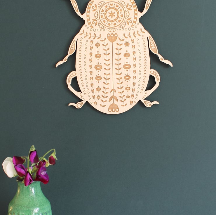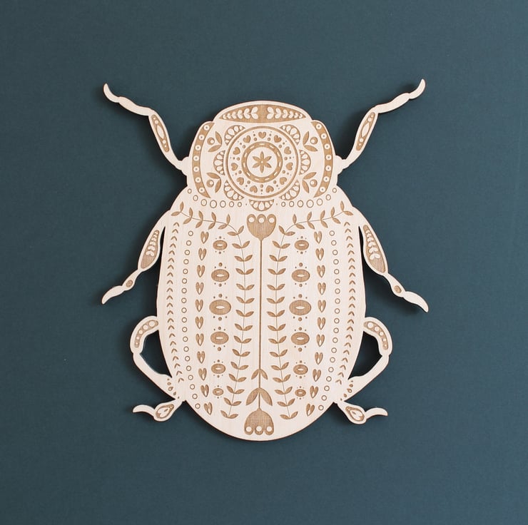 Inspired by the Rosemary beetle (one of the cutest in my opinion!) this large wall beetle has been etched with an intricate folk art inspired pattern.