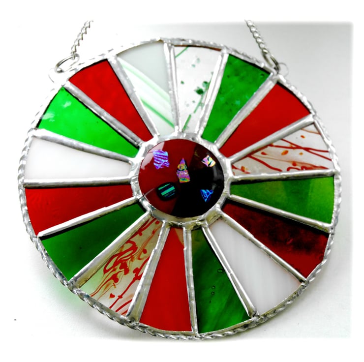 This is 13cms in diameter and hangs from a little silvery chain which is securely attached to the top of the suncatcher.