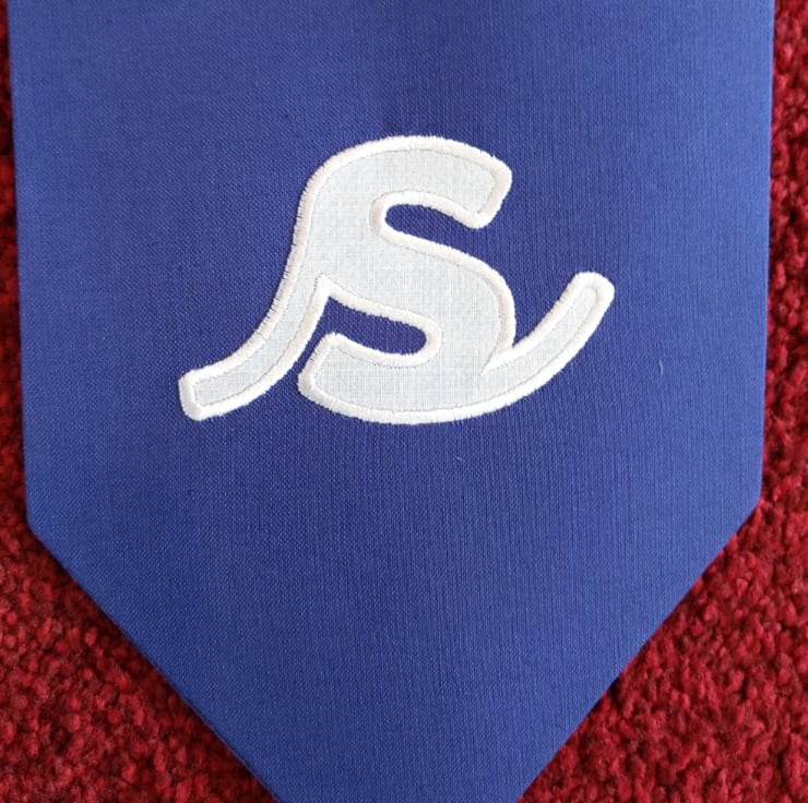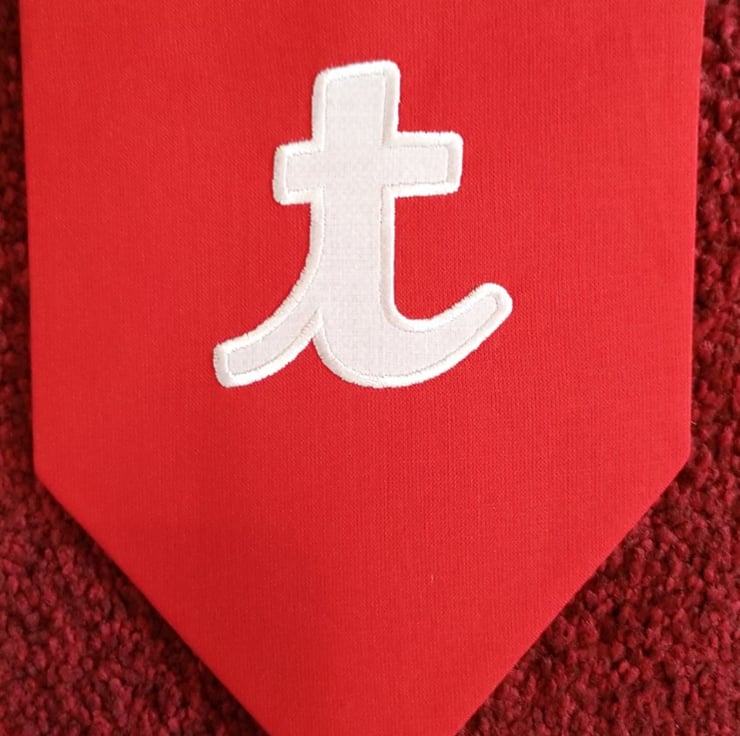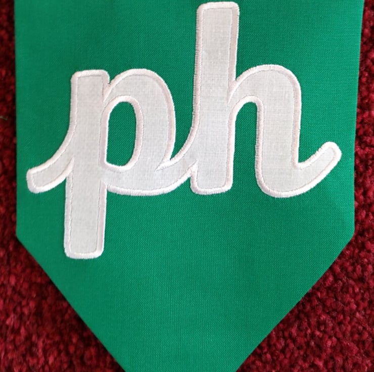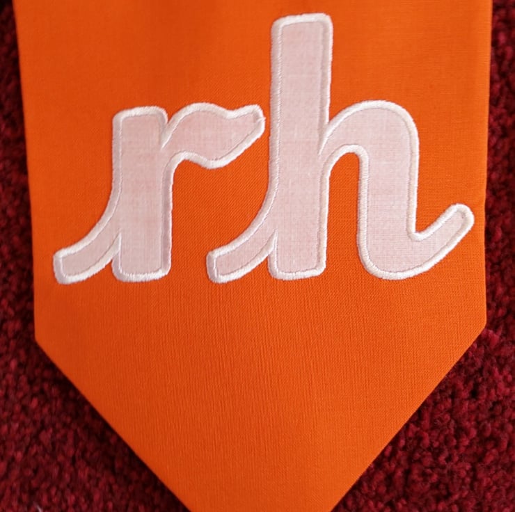 Flags are double sided (plain same colour fabric on reverse), made from rainbow coloured, cotton fabric which has been interfaced, with white cotton applique numbers, satin stitched embroidered to secure. Finished with white bias binding.