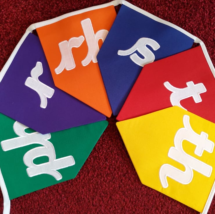 Welsh Language Hand made rainbow educational/playroom/bedroom bunting - Alphabet Cursive Font