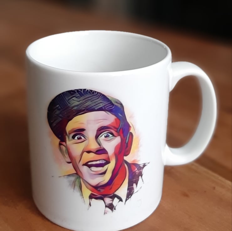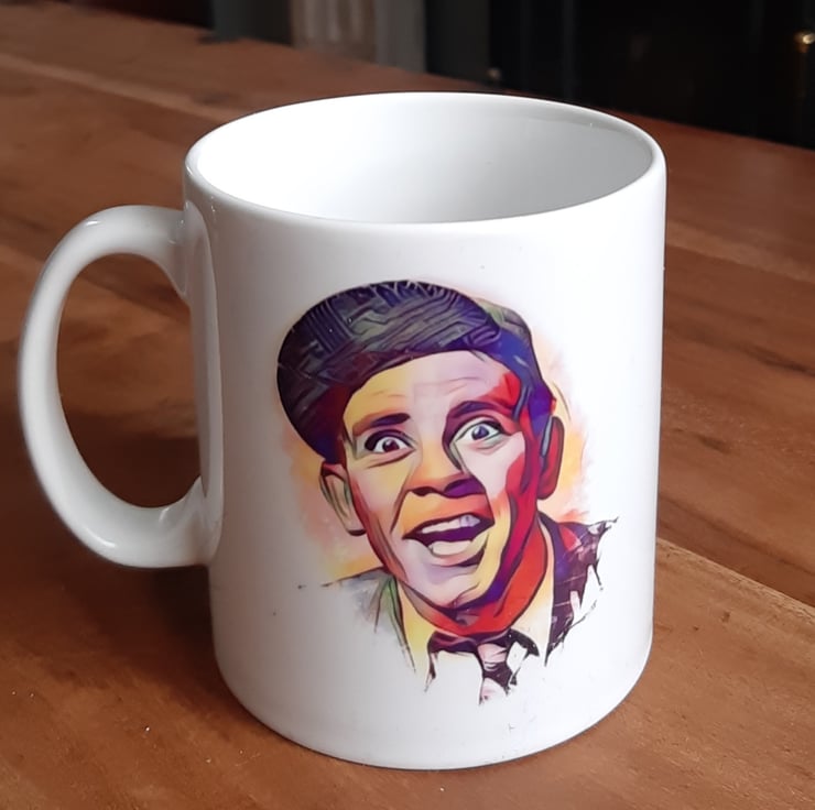 A lovely ceramic mug/cup featuring Norman Wisdom from an original design by Jayne Tunnicliffe.