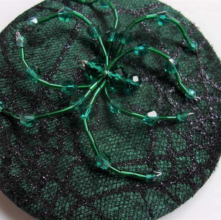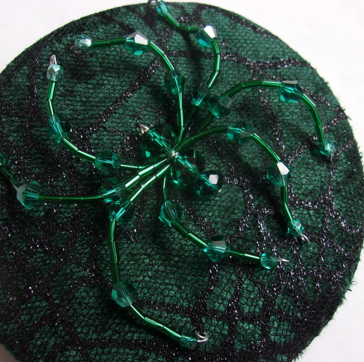 Complemented with a beautiful sparkly handmade spider, made from various glass crystal beads and bugle beads.