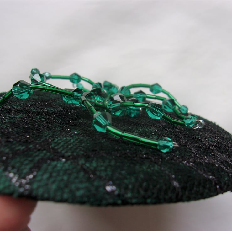 This 'Bottle Green & Black Selena' fascinator mini hat is ready made.