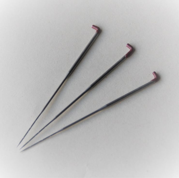 Pack of three 36 gauge triangular needle felting needles. A great all rounder suitable for most felting work, these needles will fit most available needle grips, including those available in my shop.