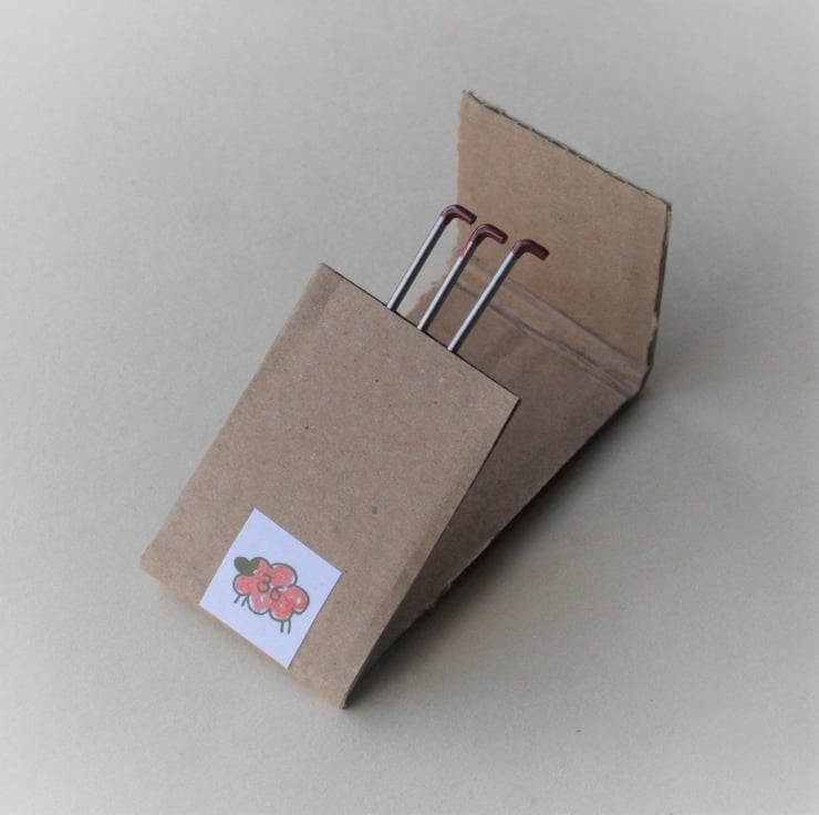 To reduce plastic, these needles are packaged in a recycled cardboard sleeve.