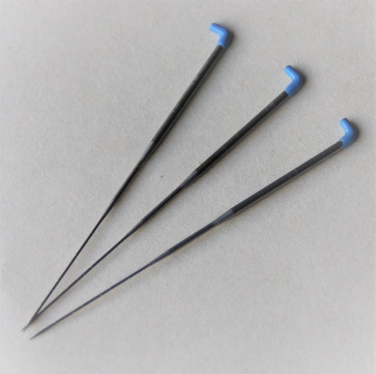 Pack of three 40 gauge triangular needle felting needles. Great for finer details and for finishing work, these needles will fit most available needle grips, including those available in my shop.