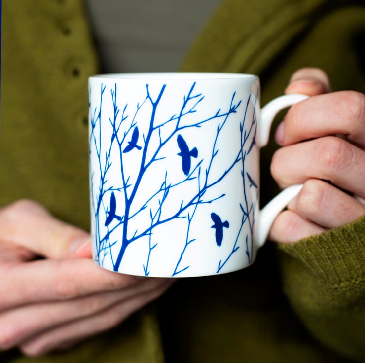 Taking inspiration from the strong British tradition of blue & white ceramics, a couple of years ago I started producing a unique collection of fine china mugs based on my Cyanotype designs. My delicate blue and white Cyanotype designs naturally lend themselves to being applied to pottery and have proved very popular. They are produced by a small family run company in Staffordshire, hopefully helping to keep the centuries old tradition alive in the Potteries.