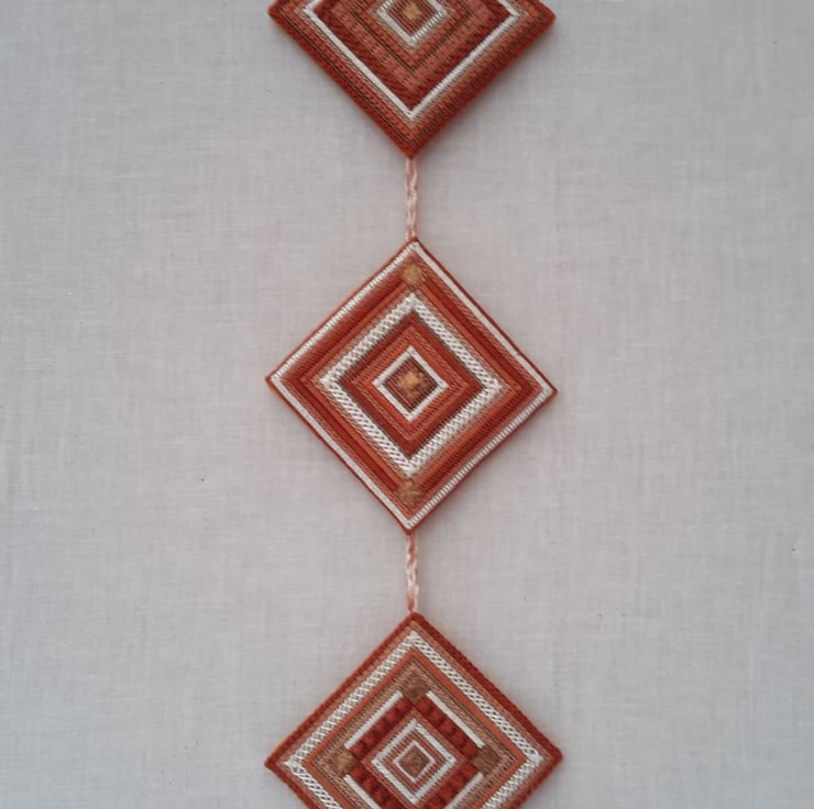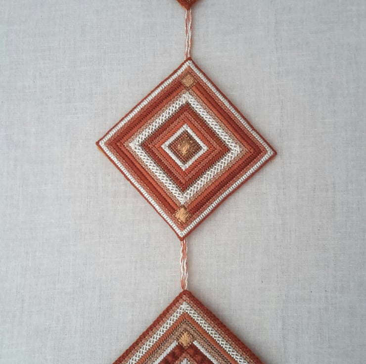 I used many different stitches and threads to create a unique wall hanging.