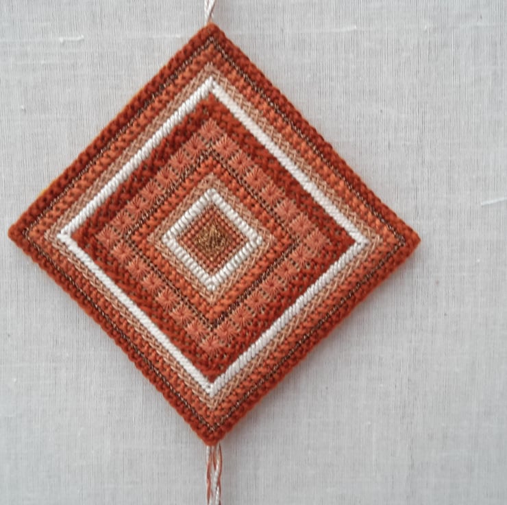 A beautiful piece of hand embroidery stitched onto 18 count canvas .