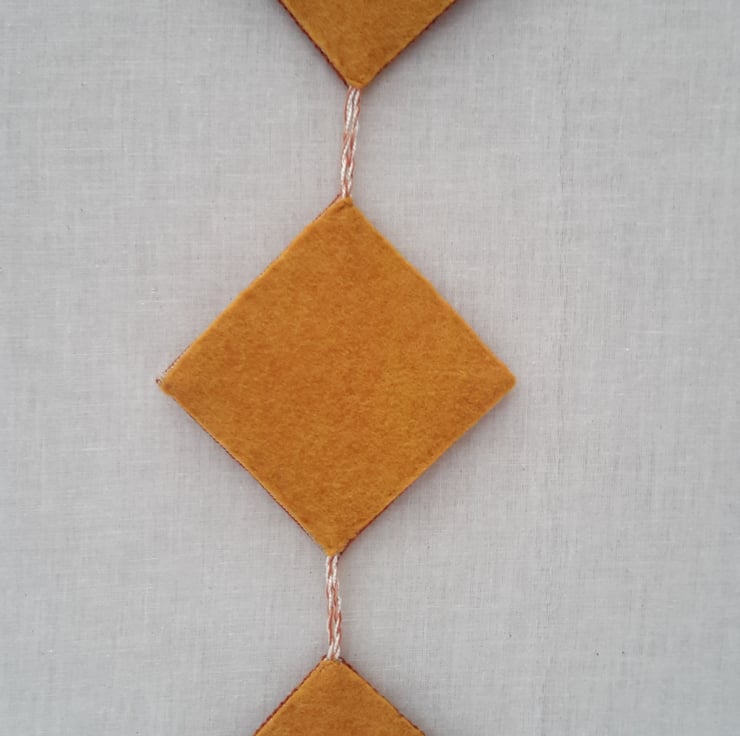 Each piece has been backed in old gold wool felt and hung with a twisted cord to match.