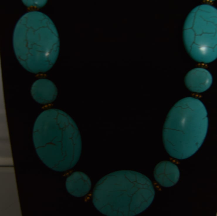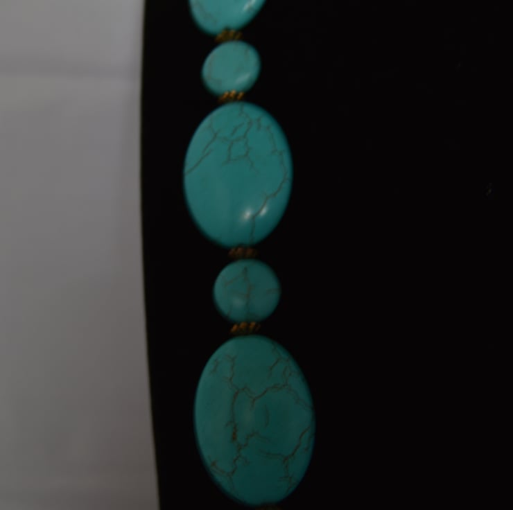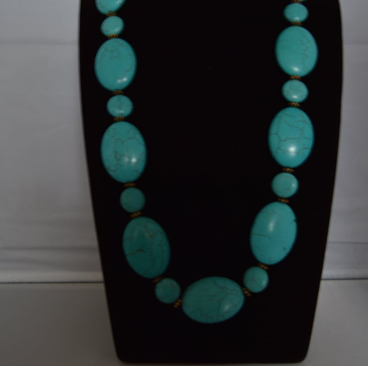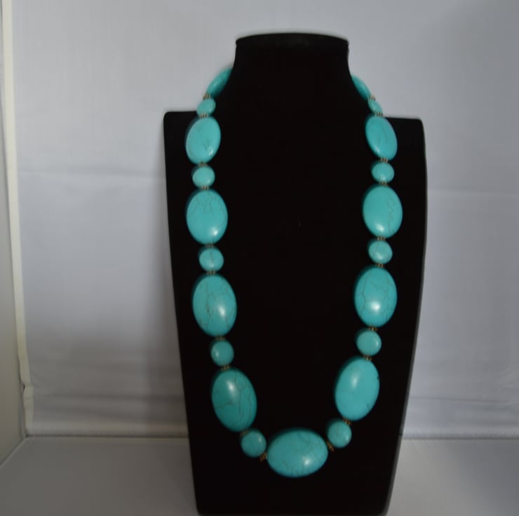 These turquoise beads are really lovely. The necklace is a longer length and quite chunky.
