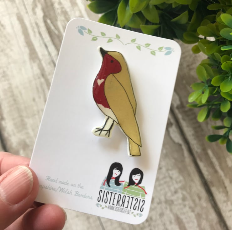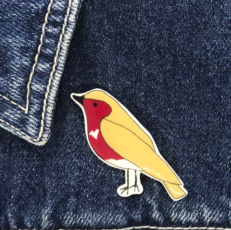 Lovely little gift for anyone who loves birds (I'm a little bit obsessed with them if I'm completely honest). My Robin Bird pins are taken from my original hand drawings. This little Robin has a very fetching Raspberry Red Chest and yellow wings and tail and wears his white heart with pride and will sit pretty on any coat or bag.