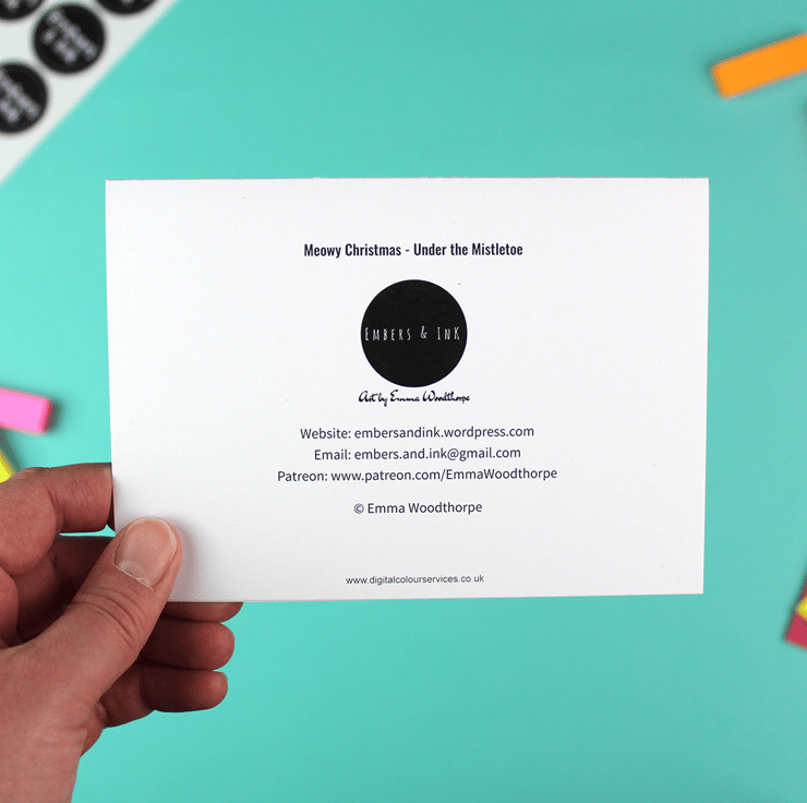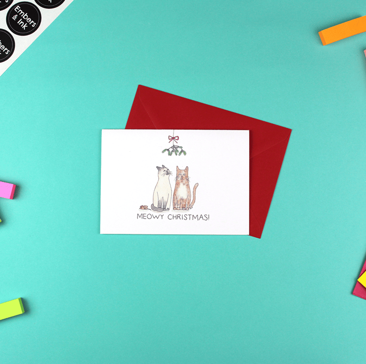 This card features a cute pair of cats, sitting under the Christmas mistletoe!