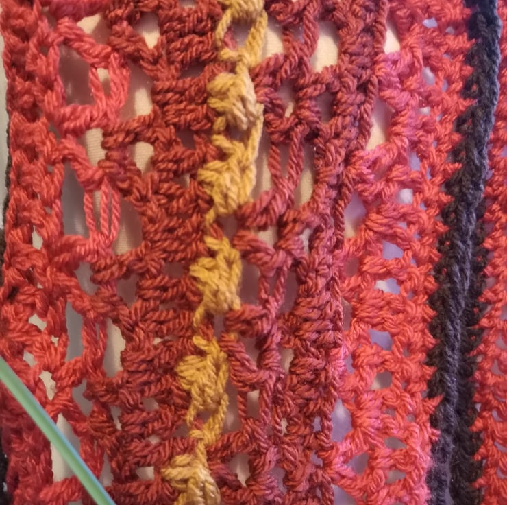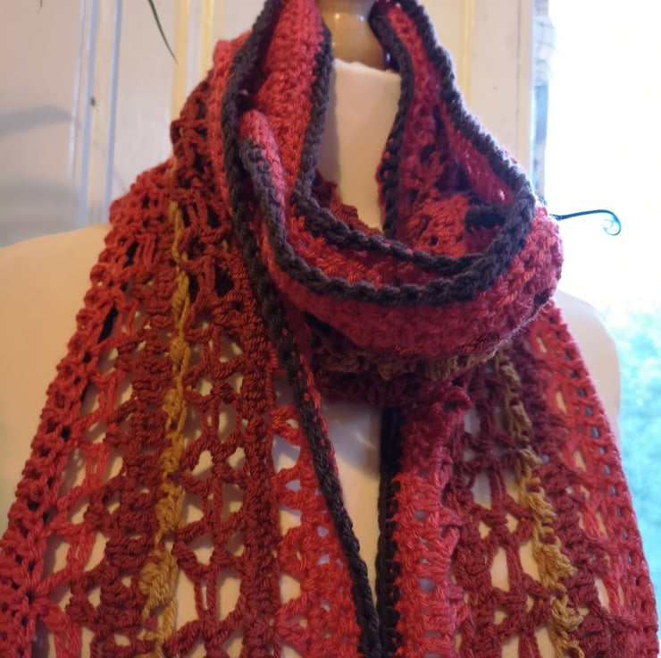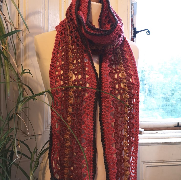 This is a commissioned item. If you would like your own extra long autumnal scarf please message me.