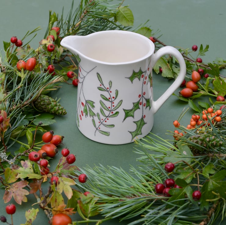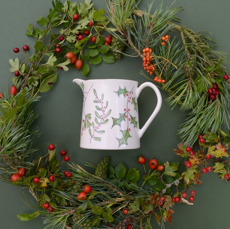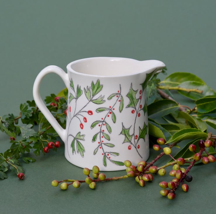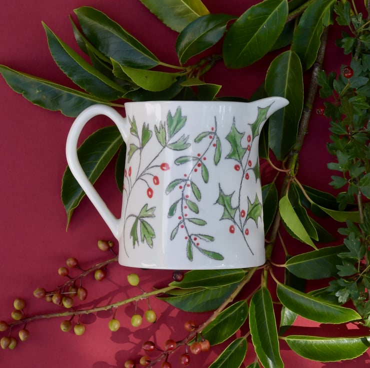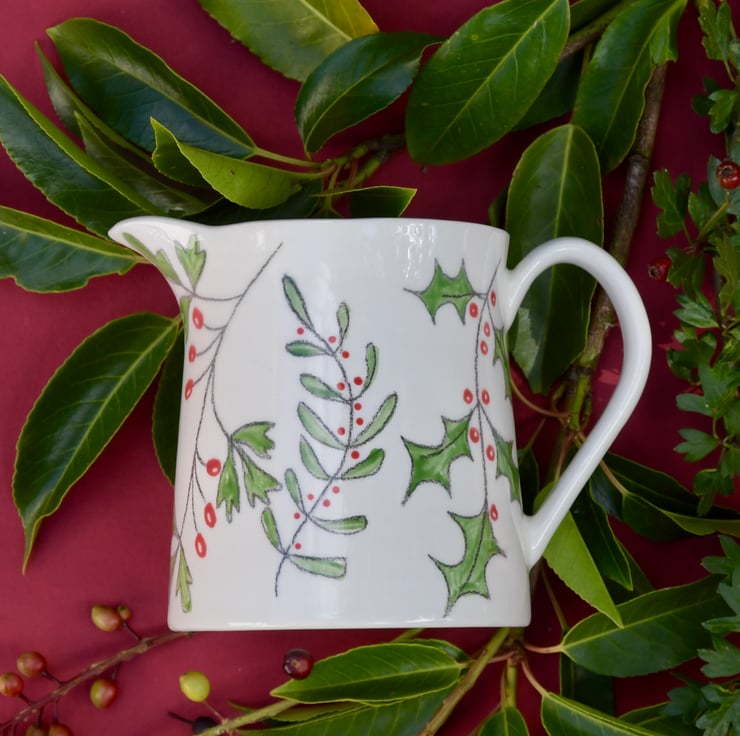 This hand drawn Winter Berries Milk Jug would be perfect for cream, brandy sauce or as a vase for a small posy of flowers. It would look fabulous on your Christmas table.