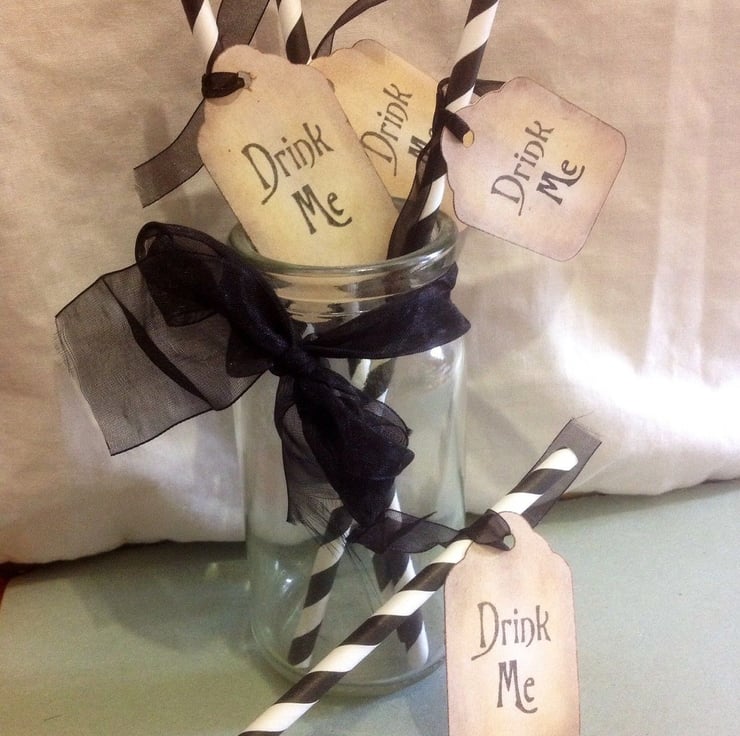 RETRO PAPER DRINKING STRAWS WITH DRINK ME TAGS