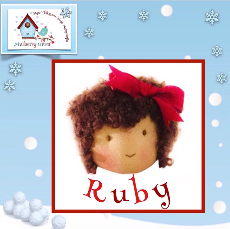 Ruby is a cute little doll made from best quality CE safe de Witte doll skin from Holland. She is made using a technique very similar to the Waldorf method, is very soft and squeezable and sits down easily. Her hair is made from pure wild mohair and her cheeks are coloured with beeswax. She is 28cm tall and is CE safe but is not suitable for children under 3.