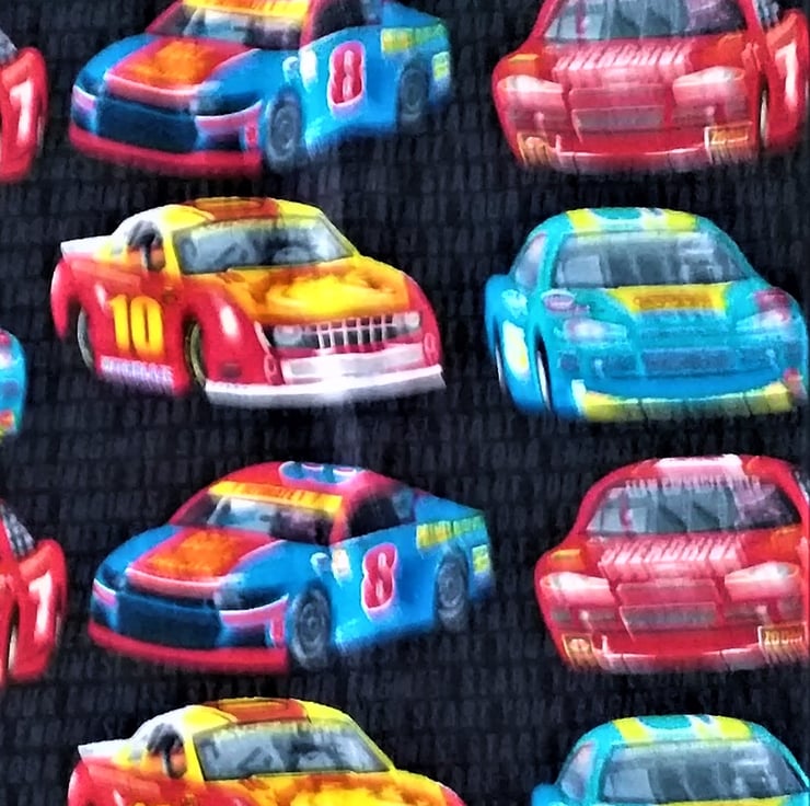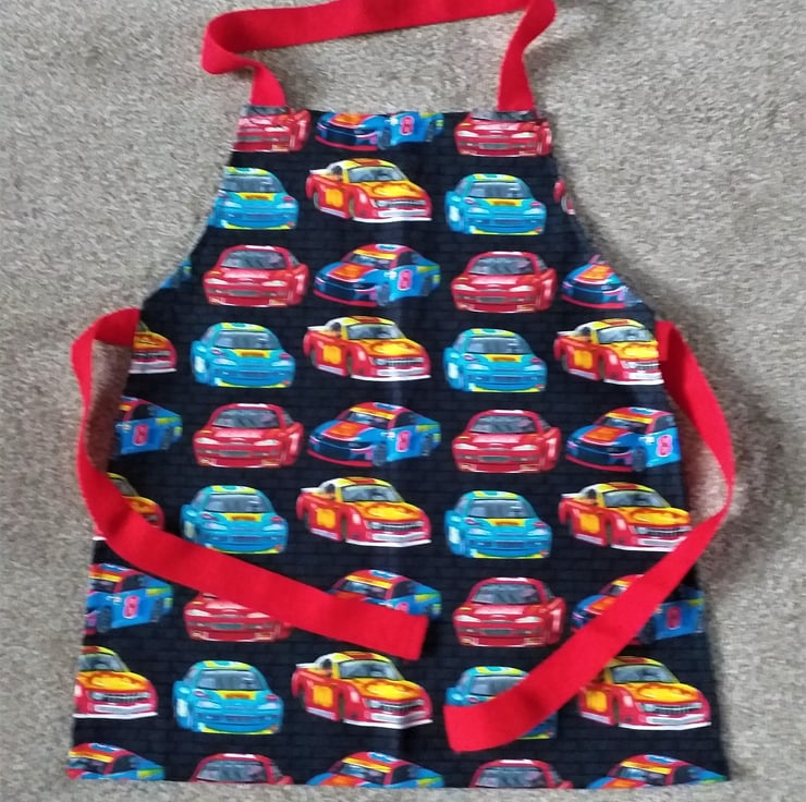 I originally made pinnies for my own children, now in their forties. I cannot resist attractive cotton fabrics for kids! Over the years I have made and sold hundreds of these little aprons. I bought this piece of fabric in order to make something for my car crazy grandson, and thought there must be other car crazy children out there!
