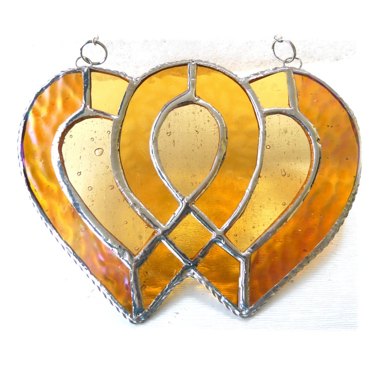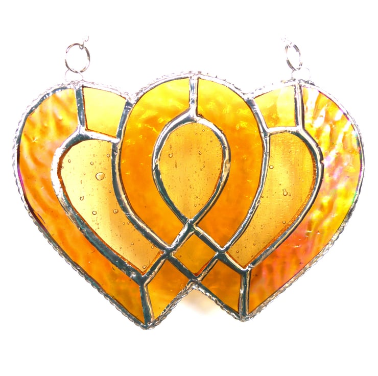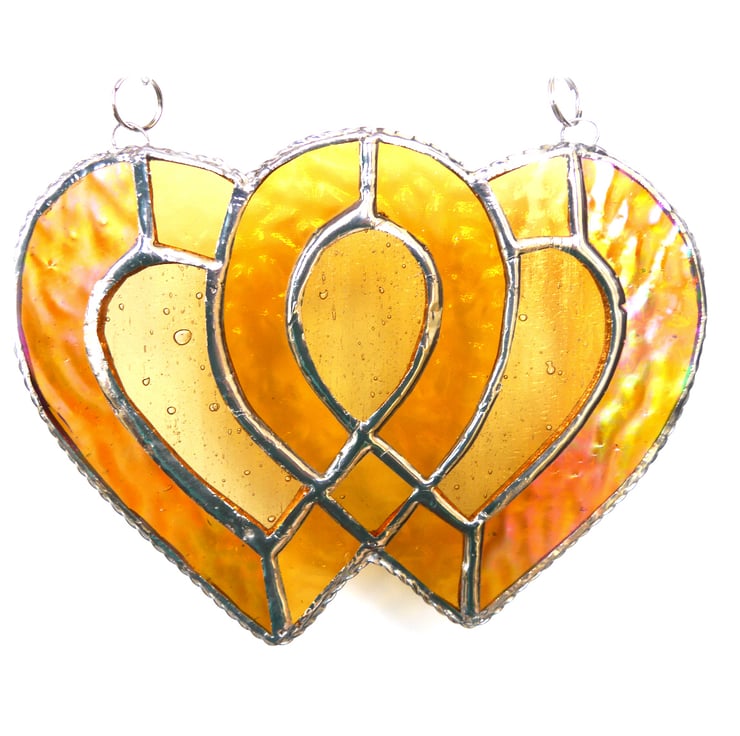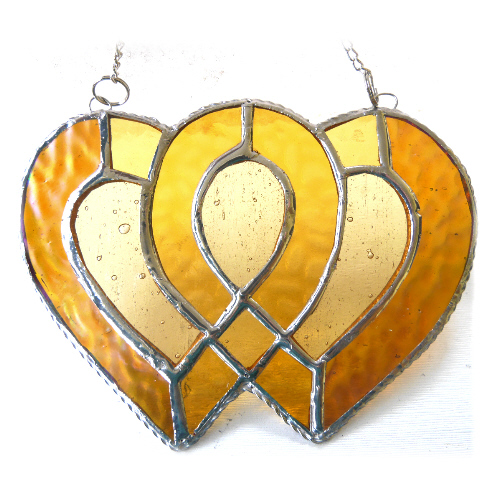 I've used textured and iridised golden glass for the 2 hearts to give lots of sparkle and infilled with some rather prettily textured palest gold glass.