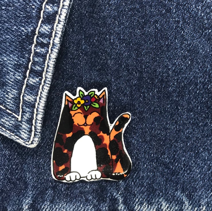 Tortoiseshell Cat - Hand made Pin, Brooch, Badge