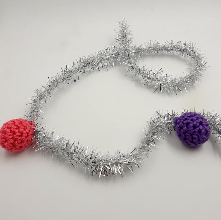 A sparkly length of slimline tinsel adorned with 12 mini crochet balls; perfect for bringing festive cheer to a room this Christmas!