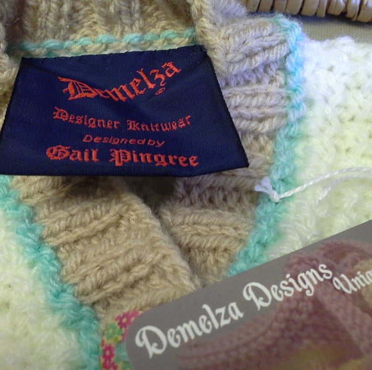 Baby knitwear is designed and hand crafted by Demelza Designs in Cornwall meeting UK baby safety standards, Only branded premuim acylic, acrylic/natural fibre blends or pure natural fibre yarns are used in baby knitwear which conforms to BS984/76 standards.