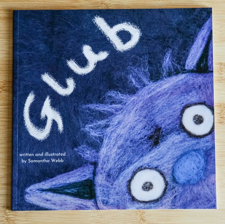 Glub is a little creature who has spent his whole life inside a crane game in an amusement arcade. Glub is surrounded by pretty teddies which all of the children want and Glub feels unloved and unwanted. A rhyming story about finding someone who will love you just the way you are. Glub has been needle felted and wet felted before being embroidered and then photographed to show the beautiful fibres. Glub is a really unique little character that will steal the hearts of under 8s and their grown ups too.
