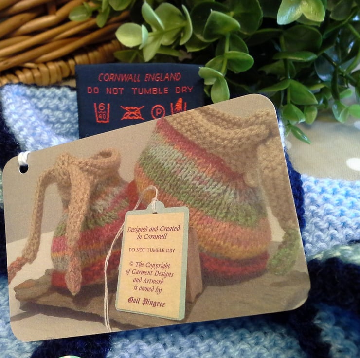 Baby knitwear is designed and hand crafted by Demelza Designs in Cornwall meeting UK baby safety standards, Only branded premuim acylic, acrylic/natural fibre blends or pure natural fibre yarns are used in baby knitwear which conforms to BS984/76 standards.