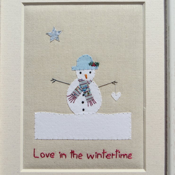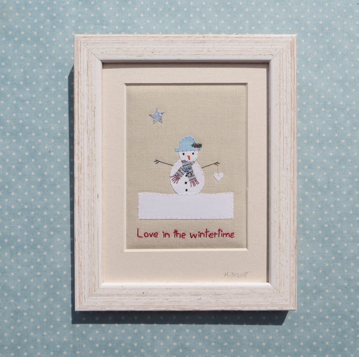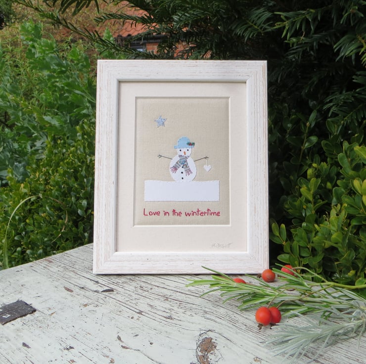 Love in the Wintertime hand-stitched framed miniature textile - so romantic!