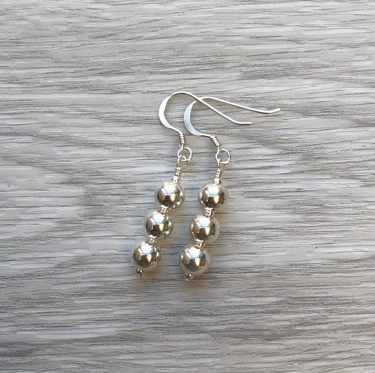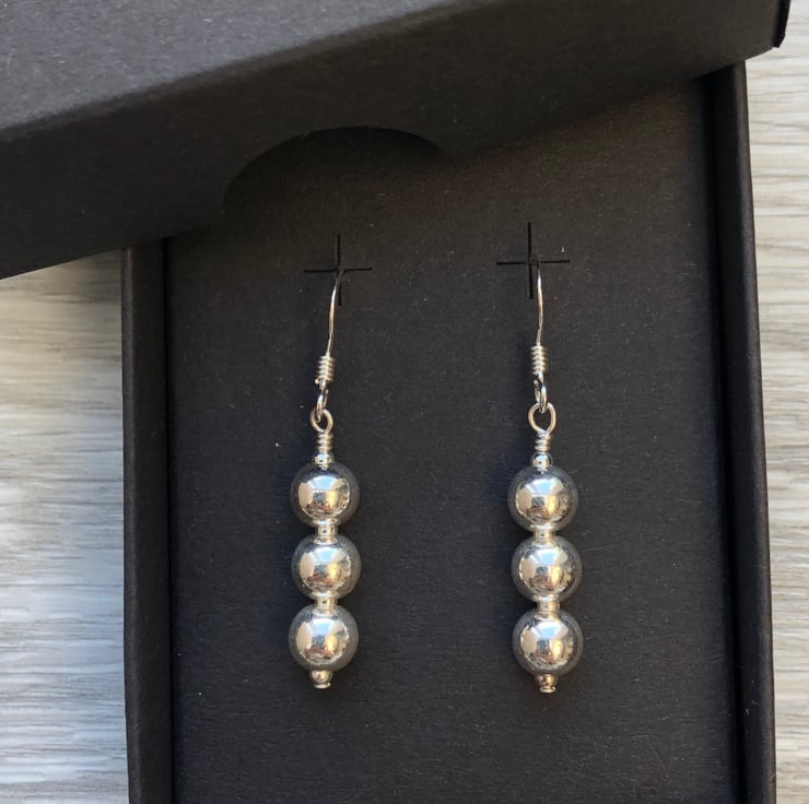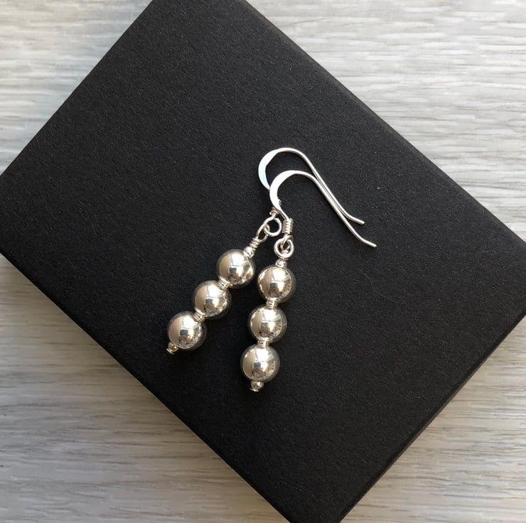 These simple yet stunning earrings have been made using sterling silver beads in two sizes.