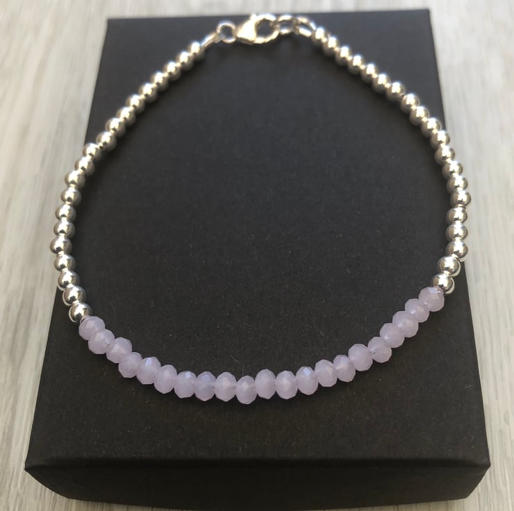 Made with 3mm sterling silver beads and 3mm crystal cut beads. Hand wired into strong jewellery wire and secured with wire guards and crimp beads. Fastened with a sterling silver lobster clasp.