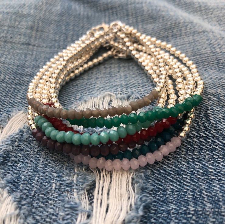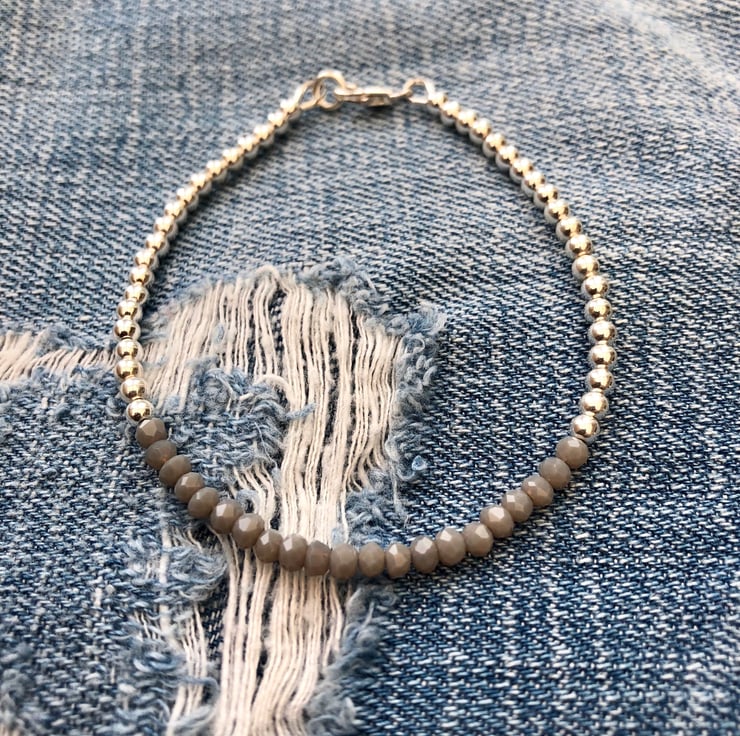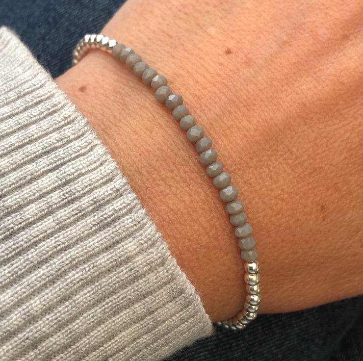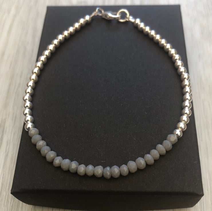 Made with 3mm sterling silver beads and 3mm crystal cut beads. Hand wired into strong jewellery wire and secured with wire guards and crimp beads. Fastened with a sterling silver lobster clasp.