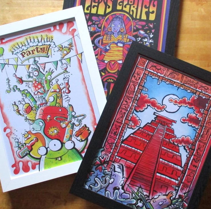 Please note: this item is a print of an original. The photo of the painting with a postcard of the original book cover it is to show the inspiration behind the making of the original. As you can see, this is just one of three A3 Poster prints in my shop.