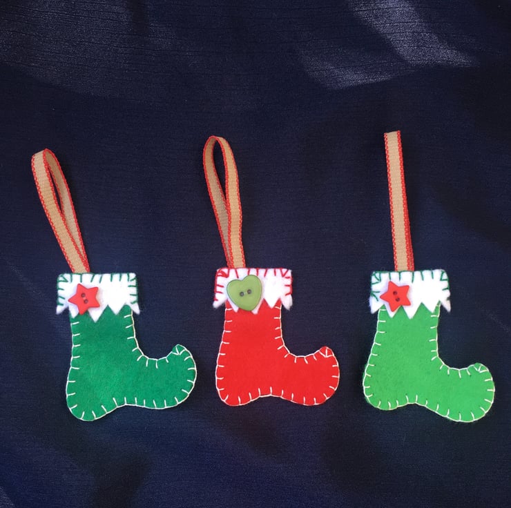 This set of three felt handmade Christmas Stockings would make a lovely addition to any Christmas Tree or be a perfect gift for someone special.