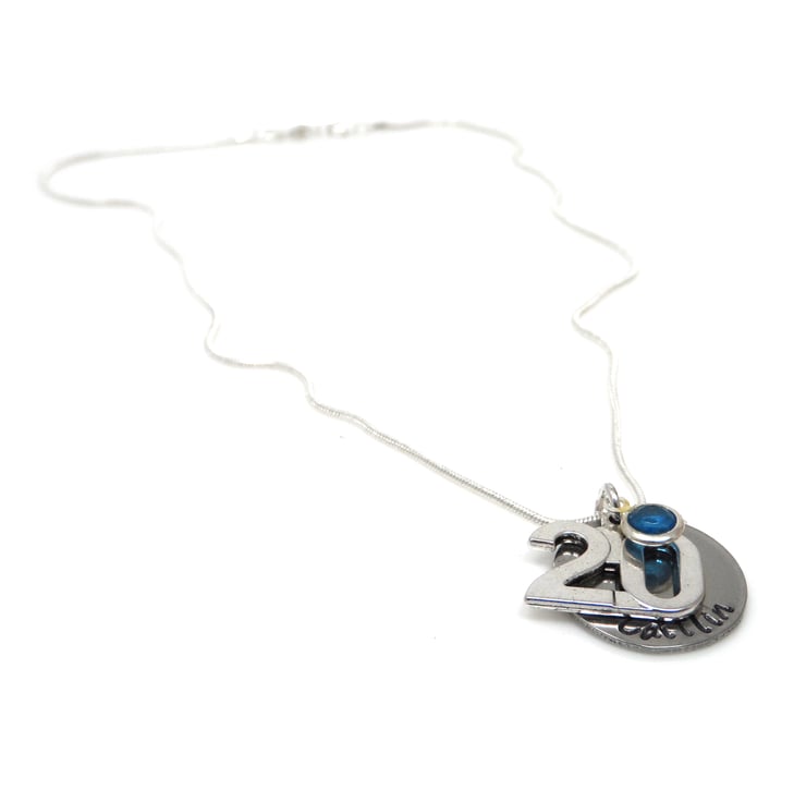 Personalise the 20th Birthday necklace with their name and birthstone.