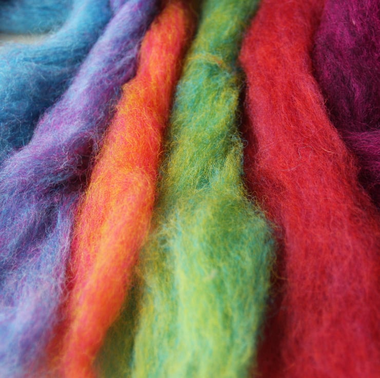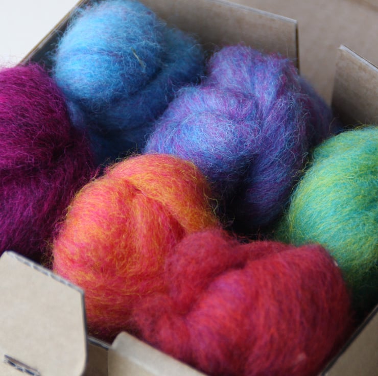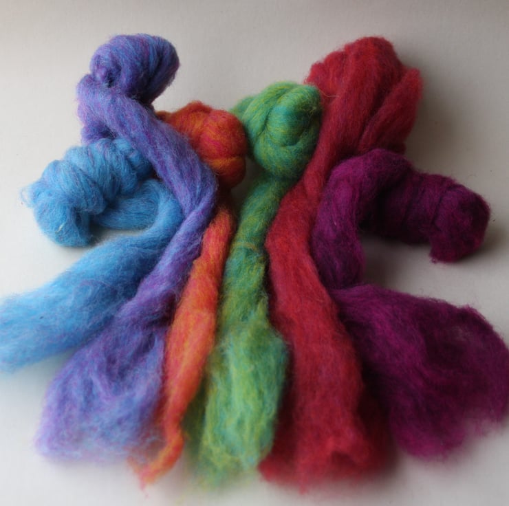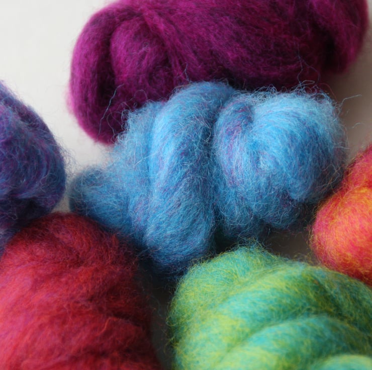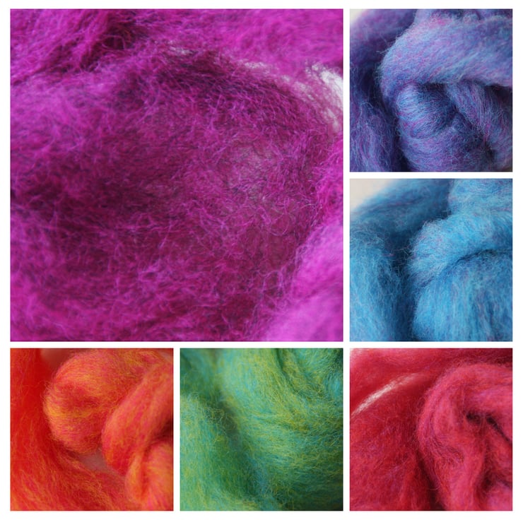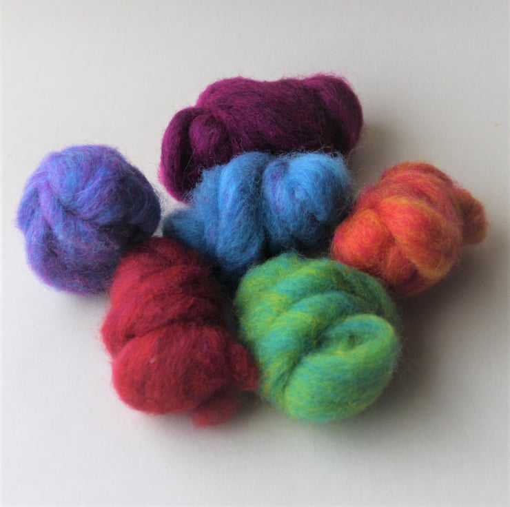 6 x 10g hanks of carded Corriedale wool in gorgeously bright and fruity candy colours. Fluffy fuzzy Corriedale wool is brilliant for 3D needle felting and for adding texture to 2D pieces and can also be used for wet felting. A great wool for beginners as it felts quickly and easily.