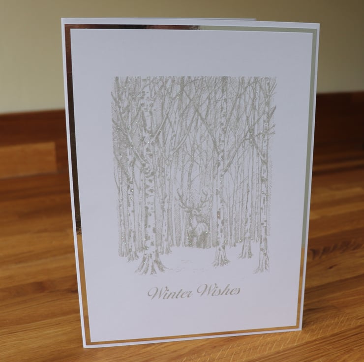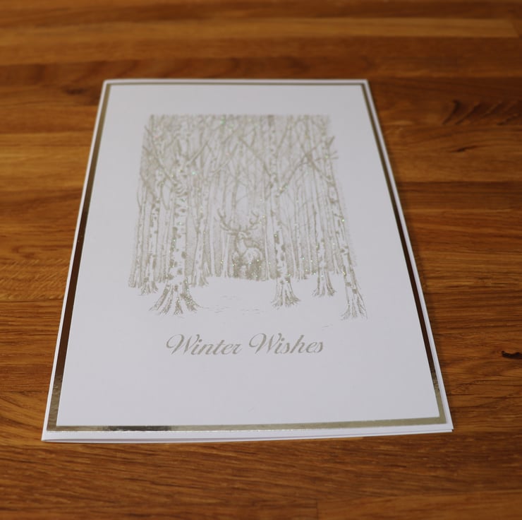 The scene on the front of the card I have screen printed on and then used some glitter, the sentiment is winter wishes.