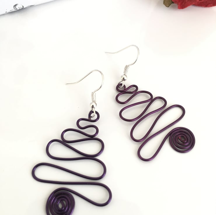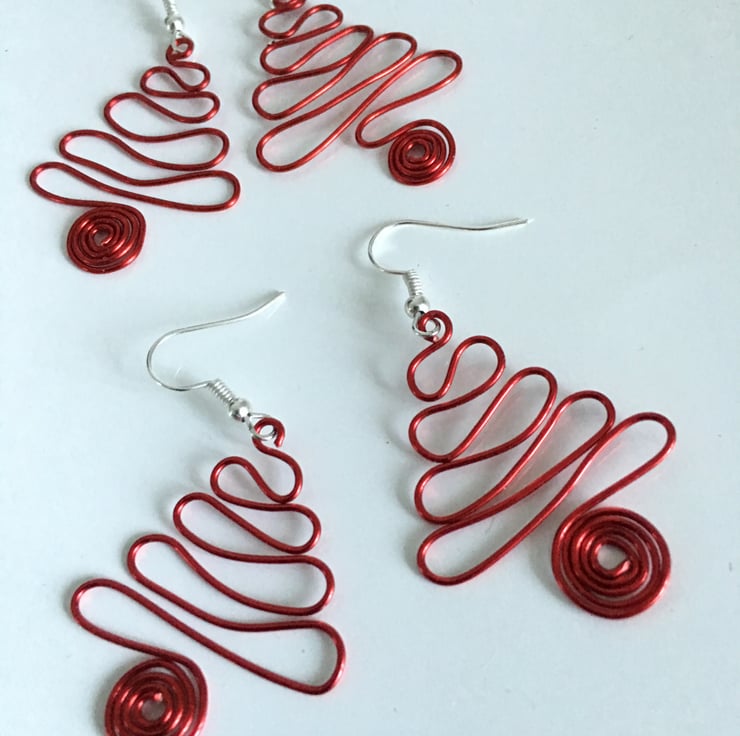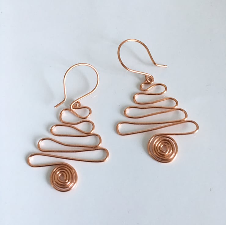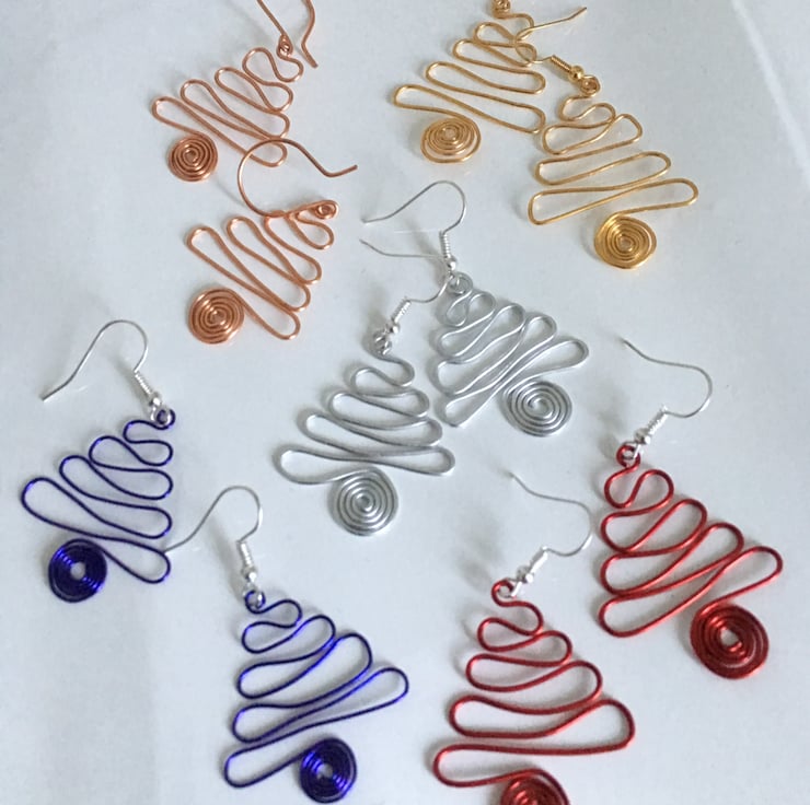 A lovely selection of wire work earrings handmade from natural and coloured copper wire. Great to wear in the office or for party wear or stocking fillers. Wear these to bring some joyful christmas spirit for family and friends.