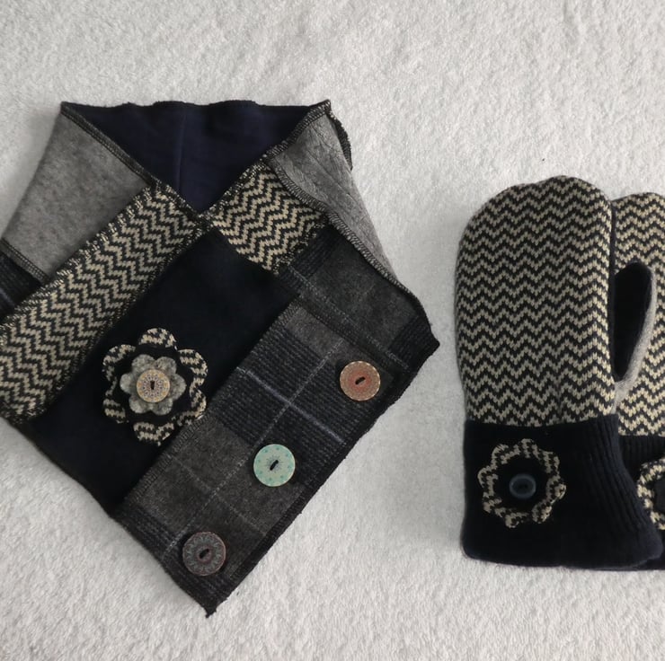 There is a matching cowl to co-ordinate with these mittens as shown in the last photograph.