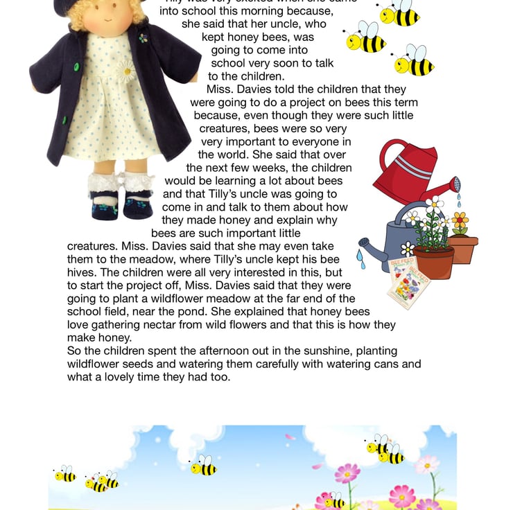 There are other children in Maisy’s class at school - Violet, Billy with his pet rabbit, Amber, Tilly, Rosie and her kittens, Amelia, Ruby, Marigold, Bobby with Max the dog, and the twins Oliver and Olivia, who have a puppy called Oscar. The dolls are all 26cm tall and baby Daisy is 16cm. Maisy and Mo love nothing more than having adventures with their friends. You can read about their adventures on my Facebook and Instagram pages - Maisy Muffin Rag Dolls and on my Mulberry Green Pinterest boards.
