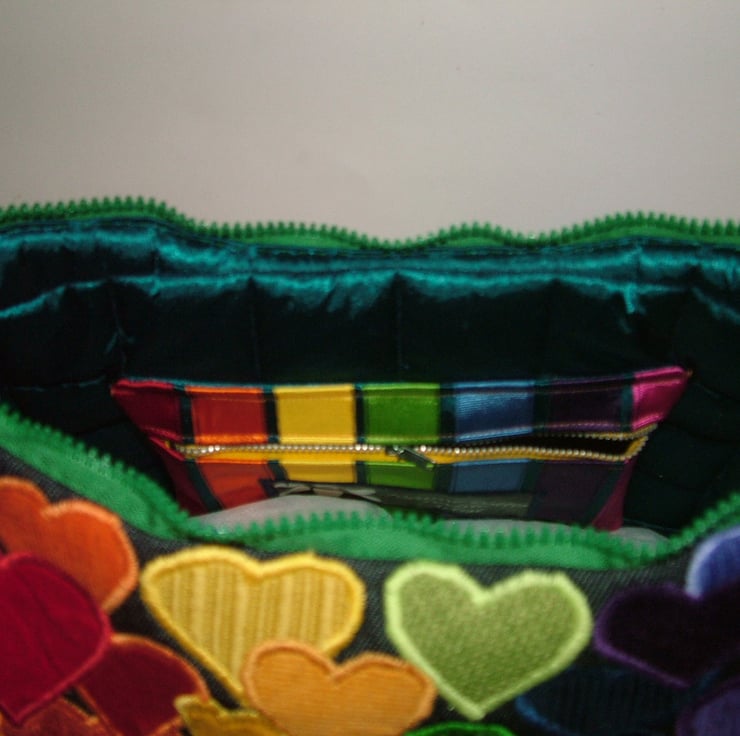 I wanted to create a handbag with as many different hearts in different colours and textures