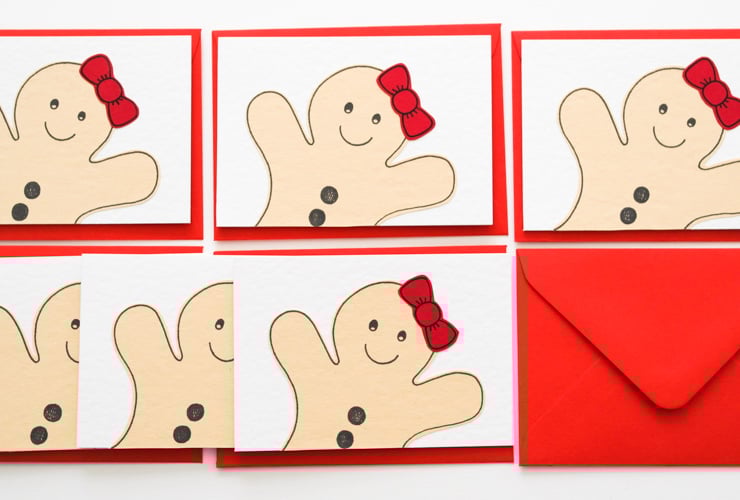 Cute Gingerbread Woman pack of six Christmas cards. Ideal to send to make anyone smile this Christmas. Use as a stocking filler for Thank you cards later on.